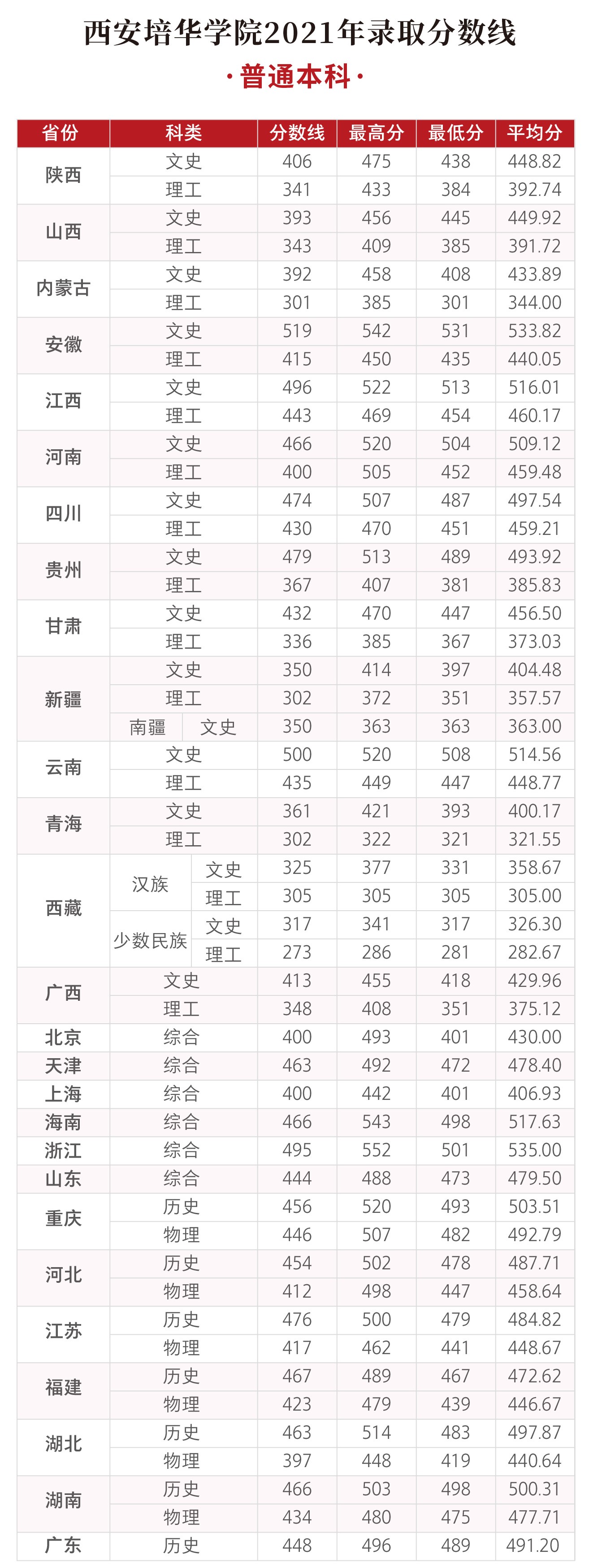 2023年高考多少分能上西安培華學(xué)院?對于準備填報志愿的考生及家長而言,都十分關(guān)注這個話題,下面為大家整理了西安培華學(xué)院各省錄取分數(shù)線一覽表,其中,包含歷年西安培華學(xué)院的最低錄取分數(shù)線,希望對大家有所幫助,數(shù)據(jù)源于網(wǎng)絡(luò),僅供參考。![]() 2023年高考多少分能上西安培華學(xué)院? 由于2023年西安培華學(xué)院錄取分數(shù)線暫未公布,因此,2023年高考多少分能上西安培華學(xué)院目前還無法確定下來,為了提供給大家更多的參考,下面為大家整理了2021-2022年西安培華學(xué)院在各省的最低錄取分數(shù)線,希望對大家有所幫助,除此之外,在西安培華學(xué)院的官方網(wǎng)站上,有更加詳細的錄取分數(shù)線,大家可多方參考,數(shù)據(jù)如有出入,請以官方最新公布信息為準。 西安培華學(xué)院各省分數(shù)線查詢網(wǎng)址:https://www.peihua.cn/ 西安培華學(xué)院2022年各省錄取分數(shù)線 1.文科(最低分+最低位次): 西安培華學(xué)院2022年在四川省本二文科的投檔分數(shù)線為495分; 西安培華學(xué)院近三年在四川省本二文科的最低錄取位次在49466至149516名之間。 這也就意味著四川省2023年文科高三考生,如果想要在西安培華學(xué)院讀大學(xué),那么至少得考進四川省前149516名才行! 2.理科(最低分+最低位次): 西安培華學(xué)院2022年在四川省本二理科的投檔分數(shù)線為450分; 西安培華學(xué)院近三年在四川省本二理科的最低錄取位次在156754至240618名之間。 這份數(shù)據(jù)告訴了2023年四川省理科考生:如果你想要拿到西安培華學(xué)院的錄取通知書,那么至少得考進前240618名,那么被錄取的概率才比較大! 西安培華學(xué)院2021年各省錄取分數(shù)線 ![]() ![]() 西安培華學(xué)院王牌專業(yè)有哪些? 西安培華學(xué)院王牌專業(yè):會計學(xué)、通信工程、護理學(xué)、電子商務(wù)、計算機科學(xué)與技術(shù)、財務(wù)管理、英語、藥學(xué)、法學(xué)、市場營銷等。 ![]() 西安培華學(xué)院簡介 西安培華學(xué)院(Xi’an Peihua University)是中華人民共和國教育部批準的具有學(xué)士學(xué)位授予權(quán)的民辦高校。學(xué)院歷史可追溯到1928年由陜西女子職業(yè)教育促進會籌辦、陜西省教育廳批準設(shè)立的西安第一女子平民職業(yè)學(xué)校,其后幾經(jīng)變遷,1984年由中國教育家姜維之教授在恢復(fù)原培華女職的基礎(chǔ)上創(chuàng)建西安培華女子大學(xué),成為國內(nèi)首家專門開展女性教育的普通高等院校。2003年經(jīng)國家教育部批準升格為本科高校,并更名為西安培華學(xué)院(男女兼收),2007年成為西部首家擁有學(xué)士學(xué)位授予權(quán)的民辦高校。2018年成為陜西省一流民辦高校建設(shè)單位。 學(xué)校與西北大學(xué)、西安建筑科技大學(xué)、延安大學(xué)聯(lián)合培養(yǎng)碩士研究生。 2023年高考多少分能上西安培華學(xué)院,就為大家介紹到這里,如果想要了解其他大學(xué)歷年最低錄取分數(shù)線、王牌專業(yè)、大學(xué)排行榜、專業(yè)選擇技巧等內(nèi)容,請點擊訪問:大學(xué)欄目。 推薦閱讀: 高考志愿填報專業(yè)代碼查詢 2022年深圳大學(xué)錄取分數(shù)線 2022年南京航空航天大學(xué)錄取分數(shù)線 2022年南方科技大學(xué)錄取分數(shù)線 2022年中國政法大學(xué)錄取分數(shù)線 |