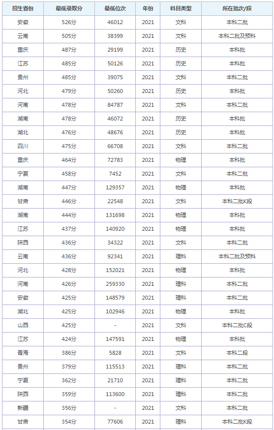 想要報考延安大學西安創新學院的同學,都比較關注延安大學西安創新學院今年的錄取分數線,那么,高考多少分可以上延安大學西安創新學院呢?延安大學西安創新學院歷年最低錄取分數線是多少? 下面為大家整理了延安大學西安創新學院錄取分數線,希望對大家有所幫助,僅供參考。![]() 2021延安大學西安創新學院錄取分數線 ![]() ![]() 延安大學西安創新學院是985還是211大學? 根據全國985和211大學名單可知:延安大學西安創新學院不是985大學,也不是211大學。 ![]() 延安大學西安創新學院簡介 延安大學西安創新學院是經教育部批準成立的全日制普通本科高校。學校坐落在歷史文化名城古長安,東依歷史文化厚重的少陵塬,南眺秦嶺,西臨現代化大學城,北與市區融合。 延安大學西安創新學院是由延安大學申辦、經教育部批準(教發函〔2004〕72號)成立的一所全日制普通本科獨立學院,是陜西省最早設立的獨立學院之一。 通過對延安大學西安創新學院錄取分數線的了解,大家大概知道了高考多少分可以上延安大學西安創新學院,以上數據源于網絡,僅供參考,大家如果想要了解其他大學錄取分數 線、大學簡介、大學排行榜、專業選擇等內容,請點擊訪問:大學欄目。 推薦閱讀: 新疆大學錄取分數線 西藏大學錄取分數線 喀什大學錄取分數線 石河子大學錄取分數線 蘭州大學錄取分數線 高考多少分可以上寧夏大學? 西北師范大學錄取分數線 |