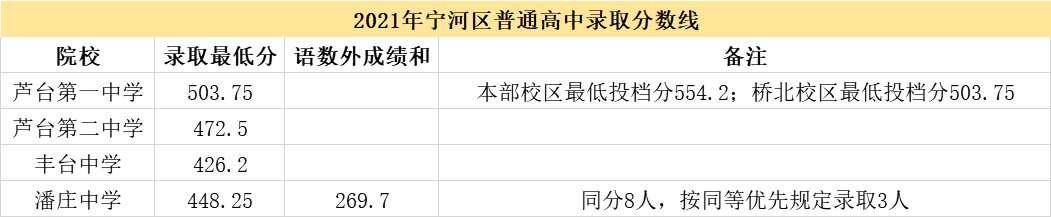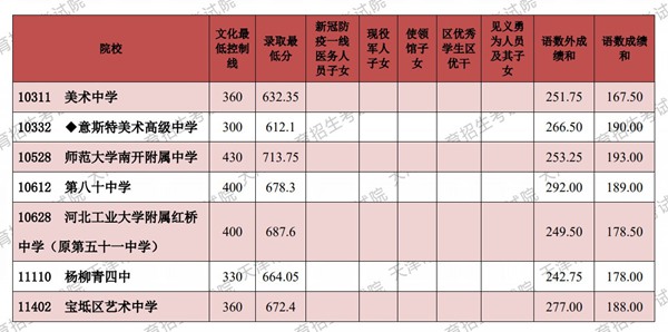中考過后,大家都希望早點公布2022年天津中考錄取分數線,中考分數線決定著孩子上哪所高中,那么,2022年天津中考錄取分數線是多少?下面就為大家整理了2022年天津中考錄取分數線一覽表,僅供參考。想要獲取更多信息,請點擊下方查詢入口。![]() 2022年天津中考錄取分數線 2022年我市中考成績正式公布。今年中考是我市實施高中階段教育學校考試招生制度改革以來的首次初中學業水平考試。考生升學總成績滿分為800分。其中,學業水平考試筆試成績分值為760分,體育考試平時成績分值為18分,體育考試統一測試成績分值為22分。今年學業水平考試全市平均分為566.95分。 天津2021年中考分數線 天津市中考總分值為590分,其中學業考試成績分值為560分,體育考試平時成績分值為18分,體育考試統一測試成績分值為12分。2021年學業考試全市平均分為419.08分。 》》》2021天津市各區高中錄取分數線 (一)藝術類高中: